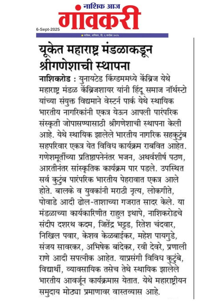 MMC regularly features in local newspapers, community newsletters, and online media. Read about our activities, achievements, and upcoming events through articles, interviews, and press releases. Stay connected to know how Maharashtra Mandal Cambridgeshire is making an impact locally and beyond.